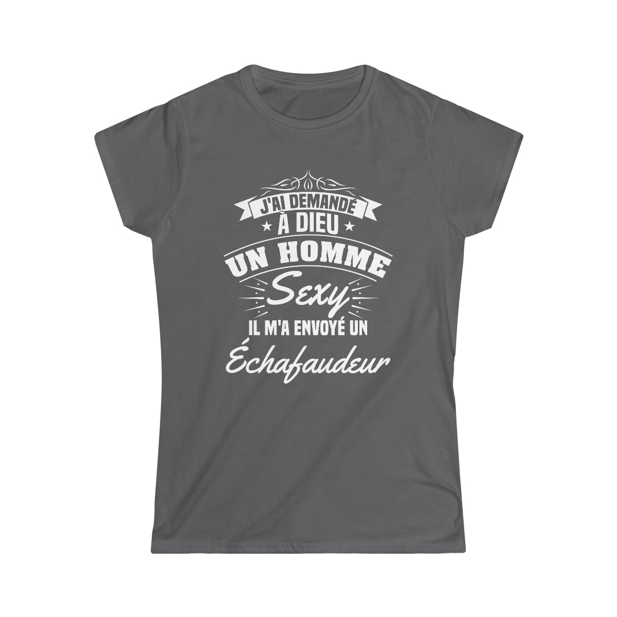 Découvrez notre t-shirt et sweat à capuche spécialement conçu pour les compagnes et épouses des monteurs d'échafaudages, un hommage à la résilience et à la précision de ce métier crucial dans le secteur de la construction. Affichant le message "J'ai demandé à dieu un homme sexy il m'a envoyé un Échafaudeur", ce vêtement célèbre le rôle essentiel et souvent méconnu de ces professionnels.