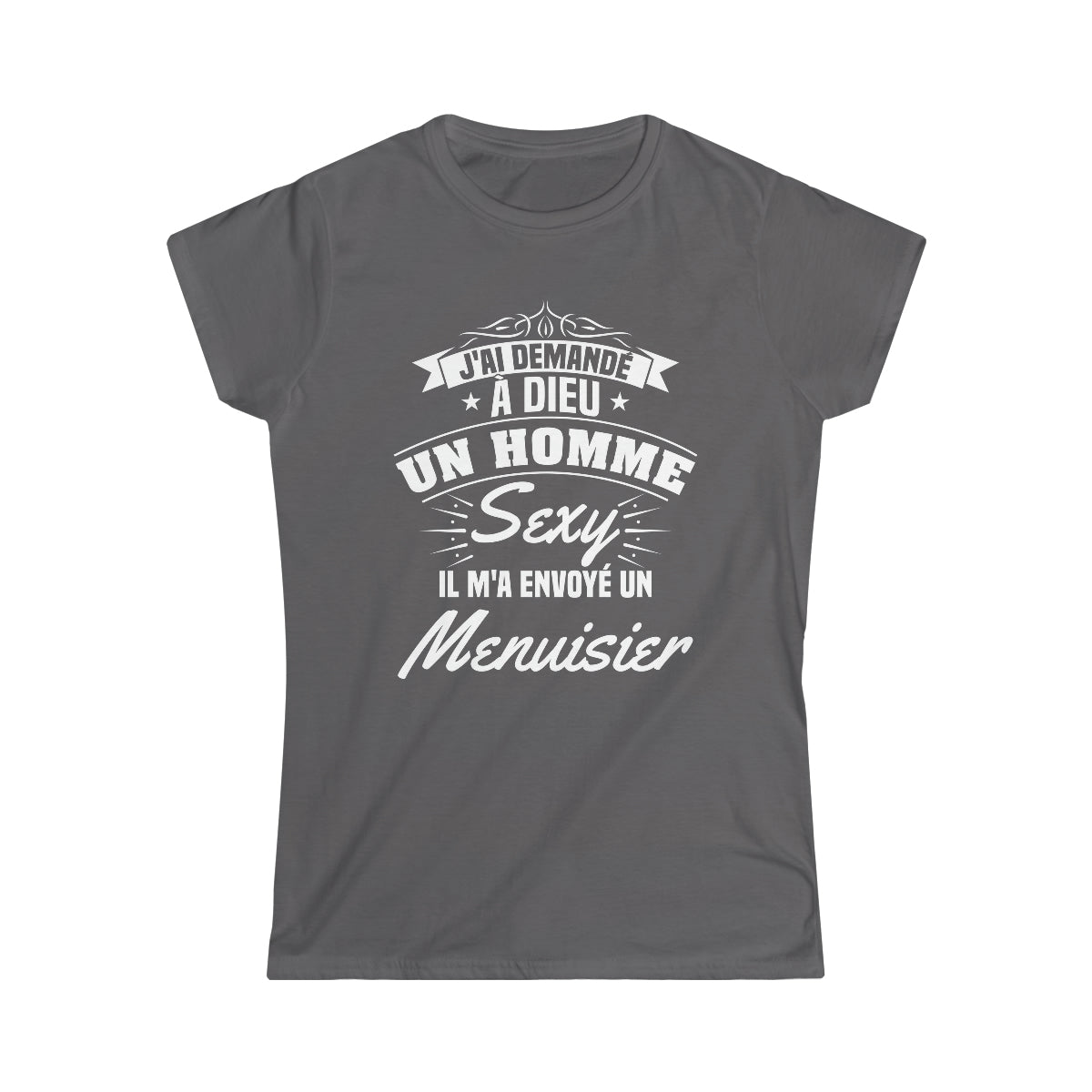 Découvrez notre t-shirt et sweat à capuche conçu spécialement pour les compagnes et épouses de menuisiers, célébrant l'habileté et la créativité de cet artisanat ancestral. Portant le message "J'ai demandé à dieu un homme sexy il m'a envoyé un Menuisier", ce vêtement est un hommage à l'amour et au soutien que ces femmes apportent à leurs partenaires, artisans du bois.