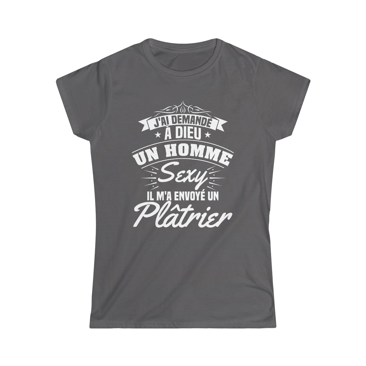Découvrez notre t-shirt et sweat à capuche conçu spécialement pour les femmes des plâtriers, en hommage à la précision et à l'art du travail du plâtre. Avec le message "J'ai demandé à dieu un homme sexy il m'a envoyé un Plâtrier", ce vêtement célèbre le savoir-faire et la minutie de ces professionnels qui façonnent l'esthétique de nos intérieurs.